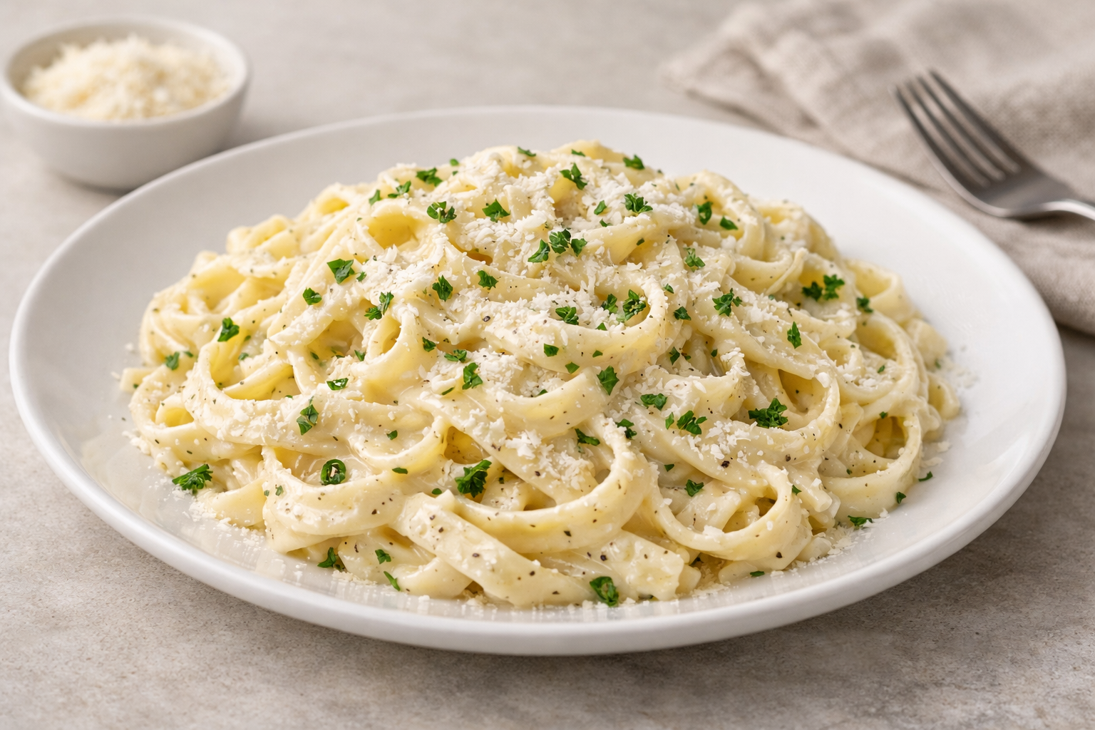 Aprenda a preparar um Fettuccine Alfredo cremoso, com molho de parmesão e creme de leite fresco, digno de restaurante italiano.
